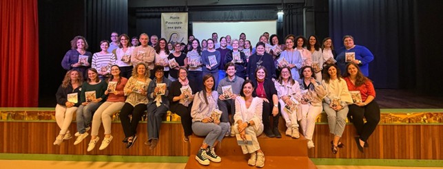 Fue un día luminoso, fraterno y lleno de vida, donde profesorado y hermanas pudieron detenerse, reflexionar y saborear la alegría de pertenecer a una gran familia que busca vivir la verdad, el equilibrio y la humildad, al estilo de nuestros fundadores, tal y como nos inspiraba el título de la conferencia: “Verdad, humildad y equilibrio, retos de hoy marcados por el estilo de Marie Poussepin”.