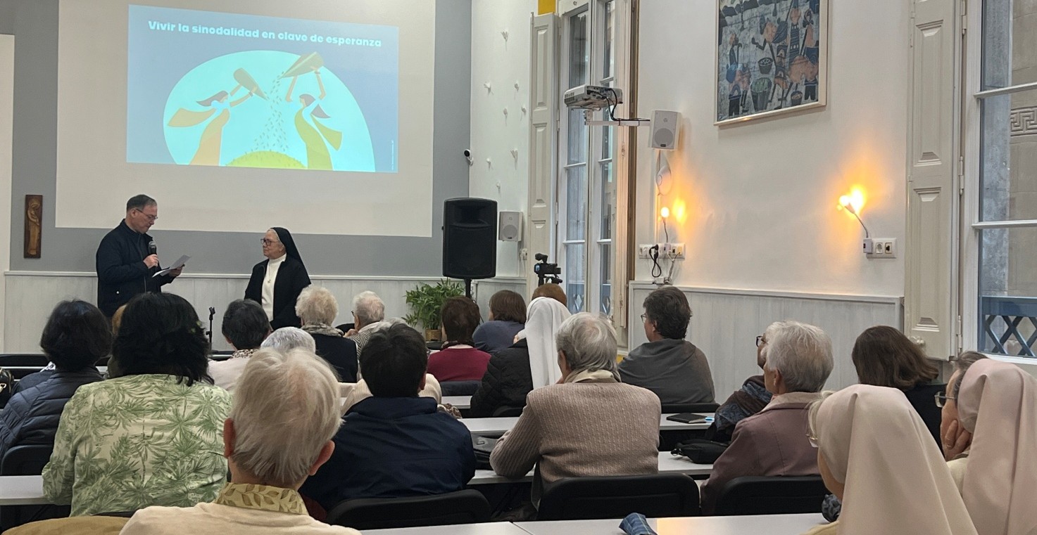 Sor Gemma Morató, comunidad de Bellafila, Barcelona, 08/11/2025.- El pasado 8 de noviembre, aprovechando la estancia de Hna. Rosmery Castañeda en Barcelona durante unos días, le pedimos que nos ofreciera una conferencia a partir de su experiencia como madre sinodal. Con la sala llena de representantes de varias congregaciones y algunas laicas, nos deleitó con una ponencia titulada «Mujer, diaconía del Reino, en la Iglesia sinodal». Nos acompañó también el delegado de la vida consagrada de la archidiócesis de Barcelona, P. Juanjo Moré, sdb.